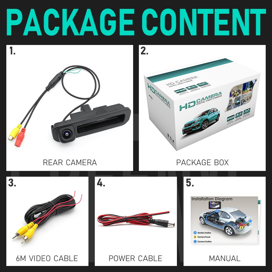 Camera marsarier HD, unghi 170 grade cu StarLight Night Vision FORD FOCUS 3 Hatchback/Break pe manerul de la hayon - FA914